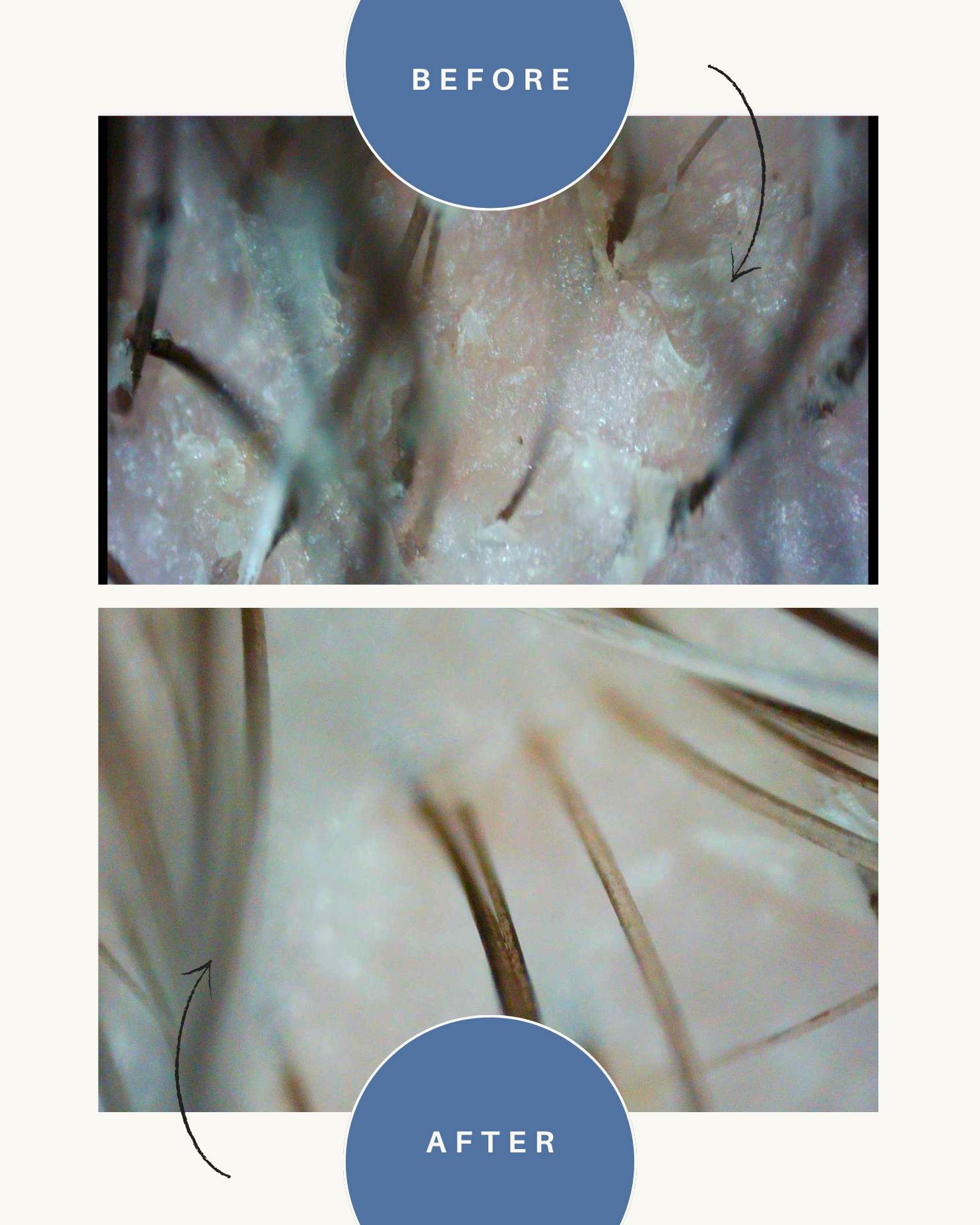 Der letzte Punkt ist die Versorgung. Feuchtigkeit und ausgewählte Wirkstoffe stabilisieren die Hautbarriere. Eine gut versorgte Kopfhaut reguliert sich selbst und bleibt ausgeglichen.